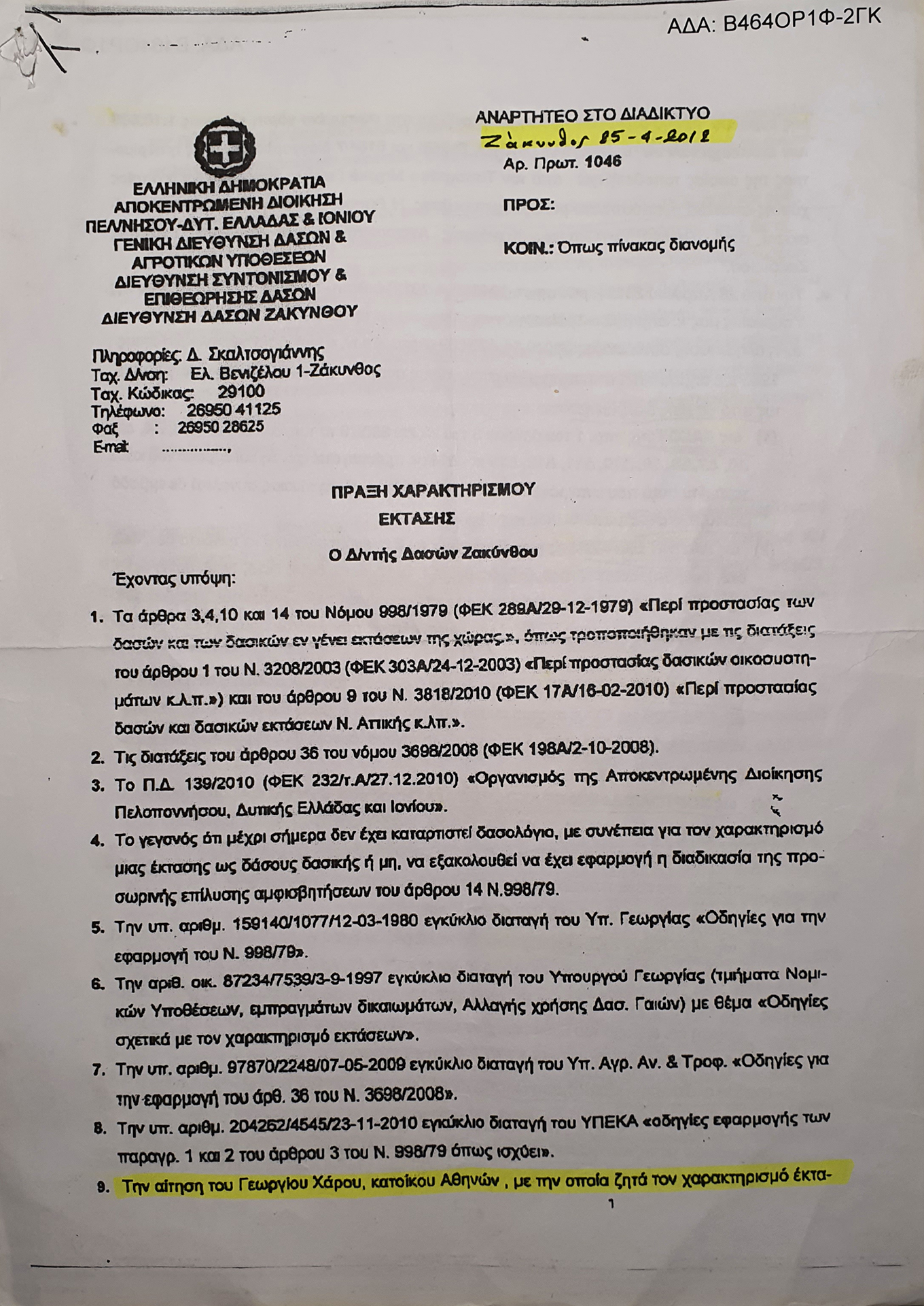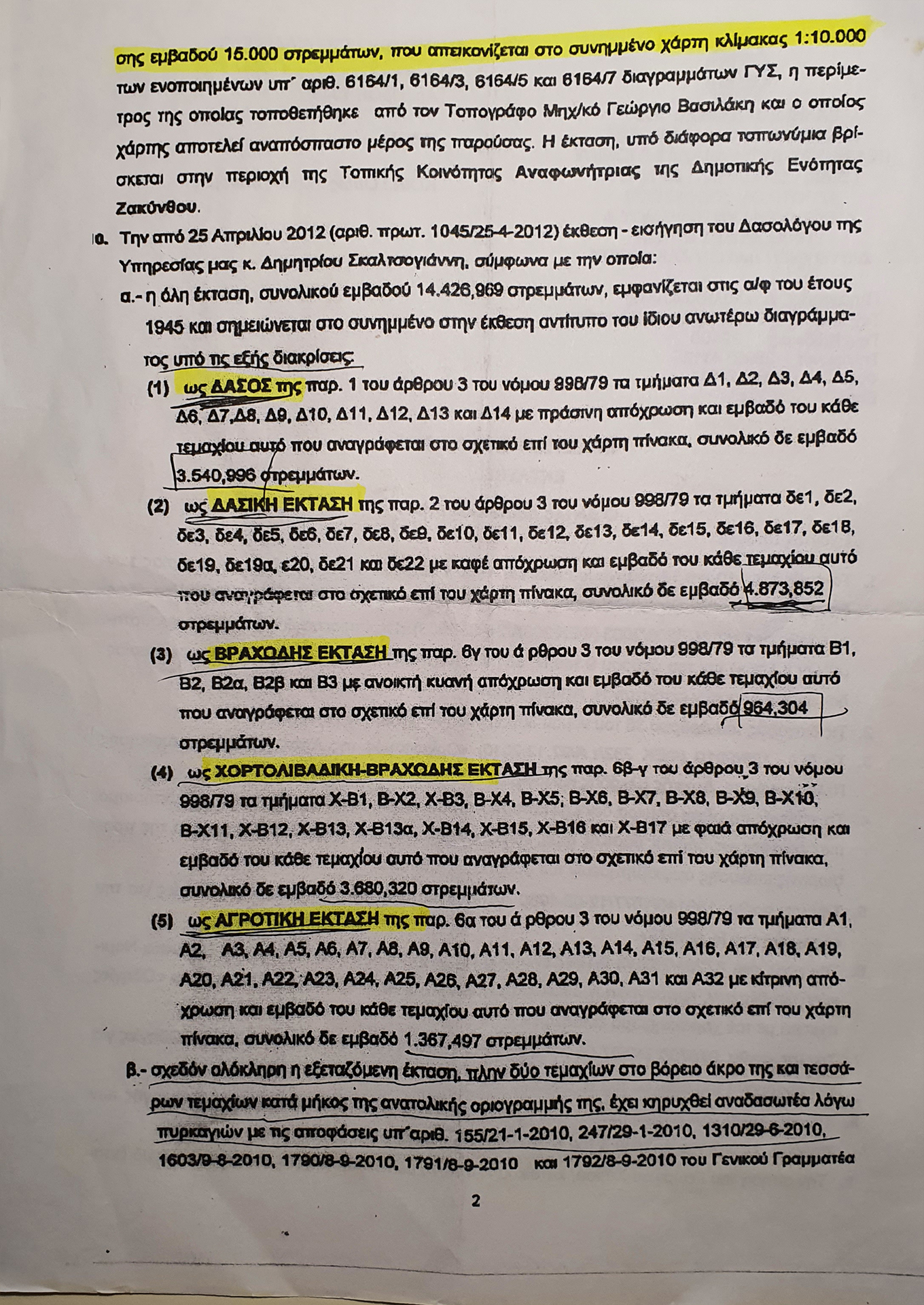Υπάρχει από τις 15 Απριλίου 2012, με αριθμό πρωτοκόλλου 1046, αίτημα του κ. Χάρου, για πράξη χαρακτηρισμού έκτασης 15 χιλιάδων στρεμμάτων. Επί 3 χρόνια τα χαρτιά πήγαιναν πέρα δώθε και κανείς δεν πήρε χαμπάρι. Αυτοί που έπρεπε τότε να ενημερώσουν τους κατοίκους, κάνουν σήμερα τους υπέρμαχους κατά της επένδυσης. Μου φαίνεται λίγο περίεργο αυτό.