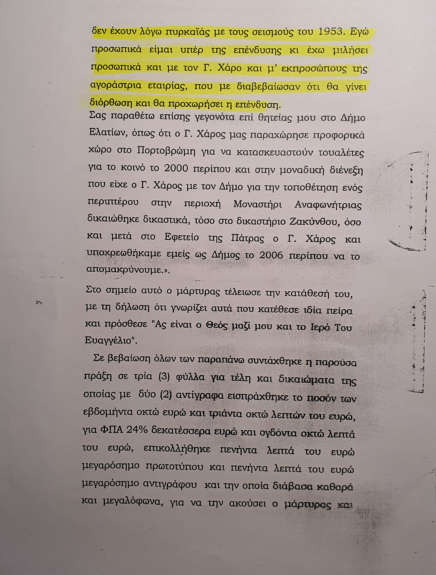 Είμαι υπέρ της επένδυσης. Τον κ. Χάρο τον γνωρίζω χρόνια, όπως και πολλοί συγχωριανοί μου. Λένε κάποιοι ότι το Μοναστήρι της Αναφωνήτριας ήταν του κόντε Φλαμπουριάρη. Οι σχέσεις μου με την Εκκλησία είναι καλές, τουλάχιστον σε ότι αφορά εμένα, και με καλές προθέσεις. Μάλλον όμως είναι σχέσεις αγάπης και μίσους. Πάντως, δεν φοβάμαι τον φόβο που παράγουν κάποιοι.
