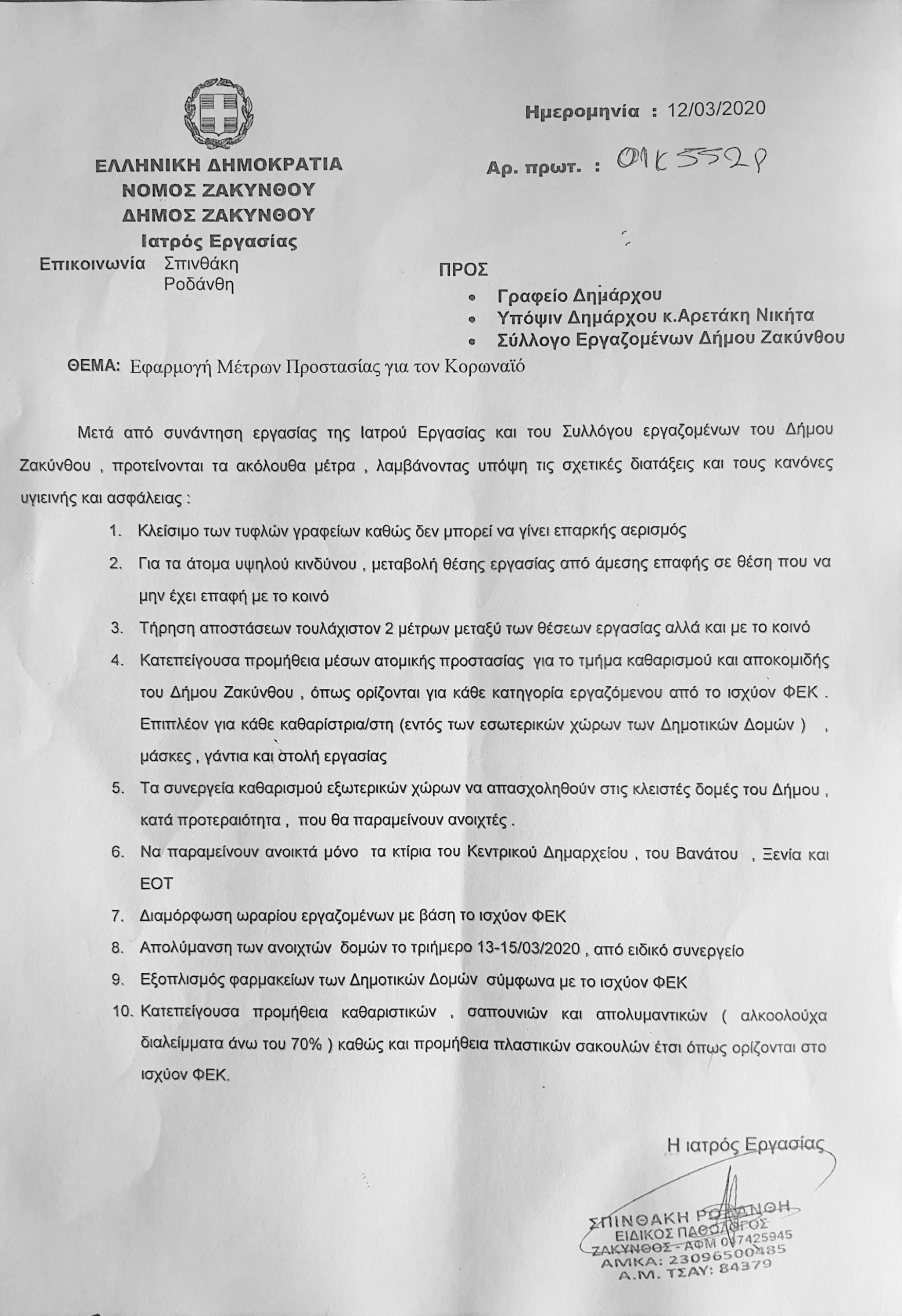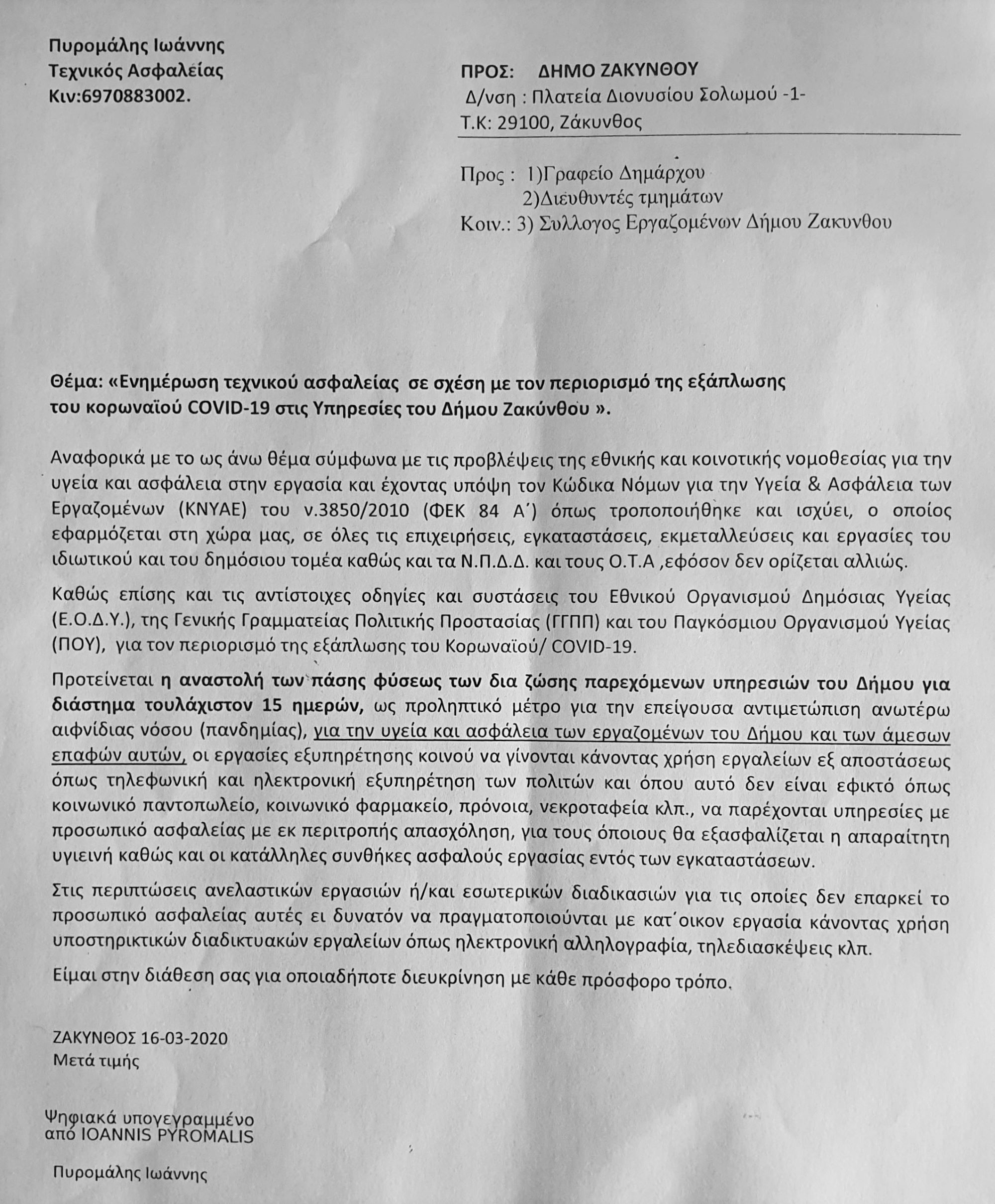 Οι υπηρεσίες του Δήμου παραμένουν ανοιχτές για να εξυπηρετήσουν τους δημότες, αλλά είναι τραγικό να έρχεται ένας δημότης και να μην υπάρχει ούτε ένα απολυμαντικό σαπούνι για να πλύνει τα χέρια του. Ζητήσαμε να μπει ένα προστατευτικό τζάμι στο θυρωρείο του Δήμου, που στοιχίζει χίλια ευρώ και ακόμα δεν έχει υπογραφεί η παράδοσή του.»