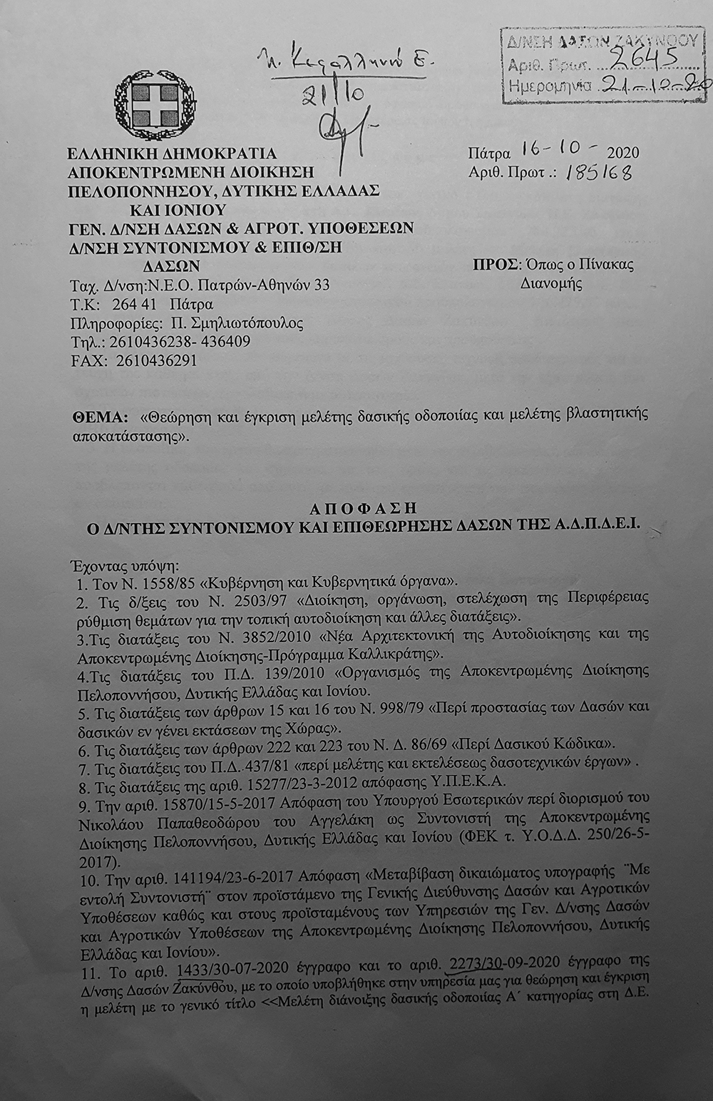 Για να δώσει η υπηρεσία μας άδεια για την κατασκευή του εργοστασίου διαχείρισης απορριμμάτων στα 83 στρέμματα του Λίβα μας κατατέθηκε από τον Δήμο μεταξύ άλλων και μια μελέτη αναδάσωσης αντίστοιχης έκτασης στον Παντοκράτορα. Δεν έγινε ποτέ αυτή η αναδάσωση και τώρα ο Δήμαρχος επικαλείται τον Κορωναϊό. Εκκρεμεί διοικητικό πρόστιμο 600 χιλιάδων ευρώ σε περίπτωση που δεν εφαρμοστεί η μελέτη αναδάσωσης. Συνεργάζομαι με τους πάντες αλλά δεν θα παραβώ τον νόμο.»