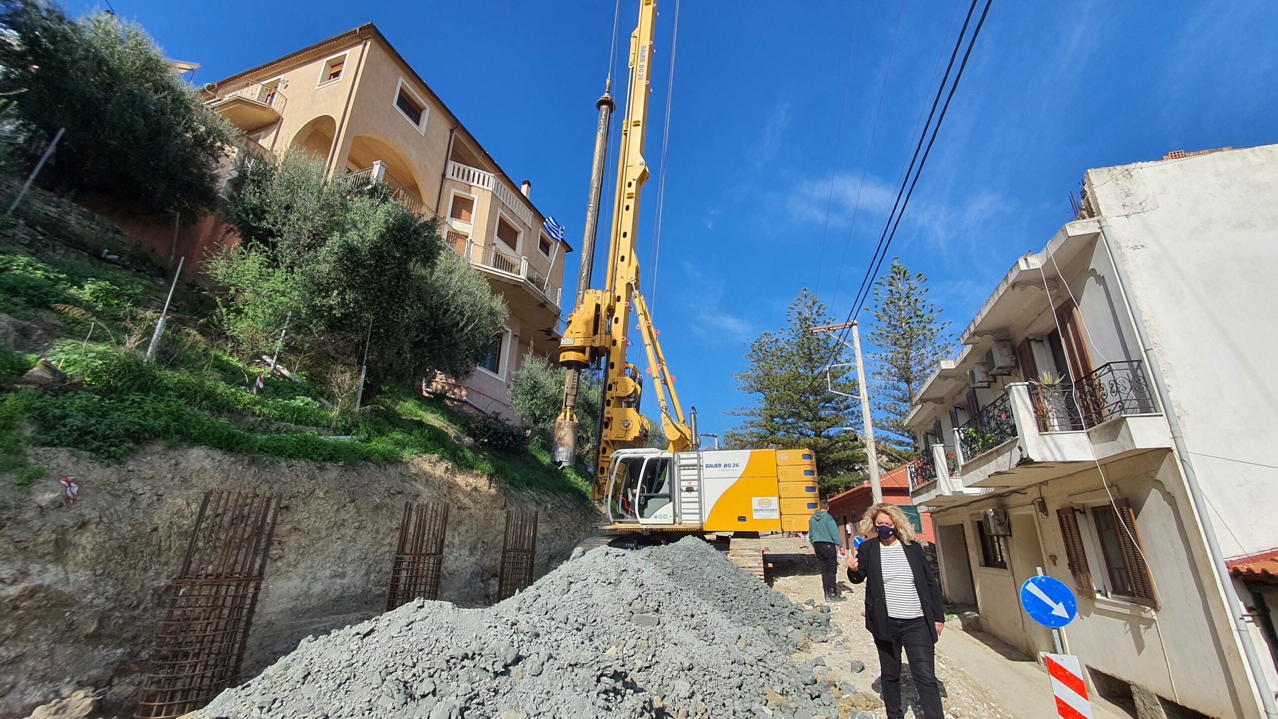 Το έργο στην οδό Φιλικών είναι πολύ δύσκολο και πρέπει να υλοποιηθεί σύμφωνα με την εγκεκριμένη μελέτη που συντάχθηκε από τις τεχνικές υπηρεσίες της Περιφέρειας. Δεν μπορεί να γίνει κάτι διαφορετικό από αυτό που προβλέπεται, πρέπει να υλοποιηθεί όπως ακριβώς περιγράφεται στη μελέτη. Θα εκμεταλλευτούμε όλον το δημόσιο χώρο που έχουμε στη διάθεσή μας. Πίσω από το τοιχίο που θα κατασκευαστεί, για την θεμελίωση του οποίου ξεκίνησαν σήμερα οι πασσαλοπήξεις, θα γίνει ένα αντιπλημμυρικό έργο. Το πεζοδρόμιο θα έχει πλάτος περίπου ενός μέτρου. Ζητάμε και την βοήθεια των ιδιωτών που έχουν όμορες ιδιοκτησίες στην περιοχή, αν το επιθυμούν ας μας δώσουν γη, ώστε να γίνει σωστά το έργο. Το πεζοδρόμιο θα ξεκινά από τη διασταύρωση στις «24 ώρες» και θα φτάνει μέχρι τη διασταύρωση της Μπόχαλης. Στο σημείο που υπάρχει η επικίνδυνη στροφή, σε περίπτωση που οι ιδιοκτήτες δεν μας δώσουν γη για να συνεχίσουμε το πεζοδρόμιο, θα κατασκευάσουμε μια ξύλινη εναέρια γέφυρα ώστε ο πεζός να μπορεί να διασχίζει με ασφάλεια το δρόμο για να περάσει στο απέναντι πεζοδρόμιο.