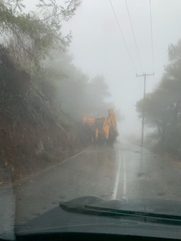 Λόγω της ομίχλης η ορατότητα εδώ είναι σχεδόν μηδενική, έχουμε ανέμους έντασης μέχρι και εννέα μποφόρ και ισχυρές βροχοπτώσεις. Καλώ τους συμπολίτες μου να μην κυκλοφορούν στους δρόμους.